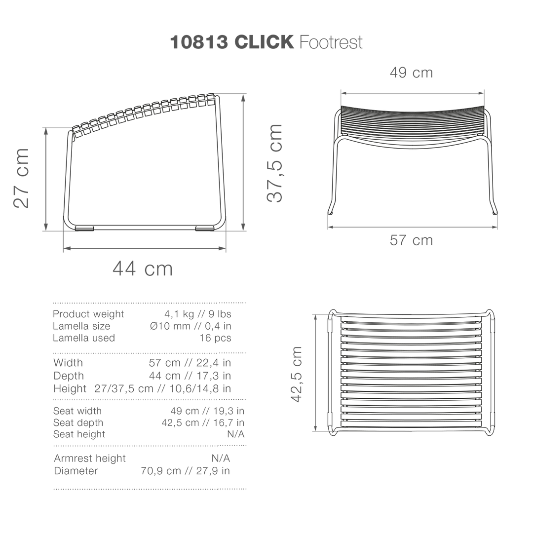 Click Footrest is designed to complete the shape of the chair it complements The angle makes it the perfect footrest Use it together with Click Dining chair, Click Position chair, Click Lounge chair or Click Rocking chair for even better relaxation.