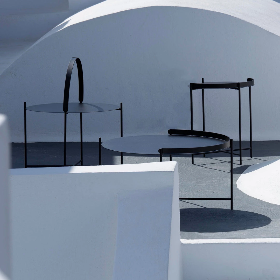 Edge coffee table with a half Circle handle as a decorative feature that makes the table easy to move from room to room – or from outdoor to indoor. Edge comes in 3 different sizes.