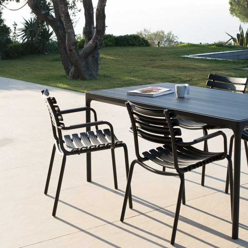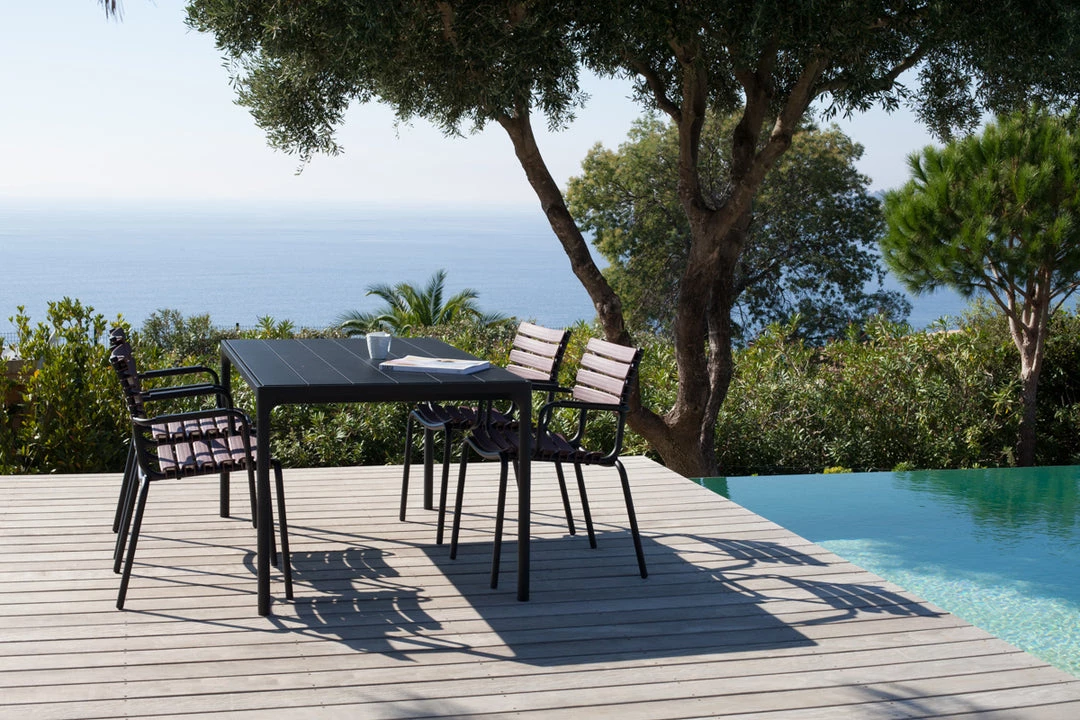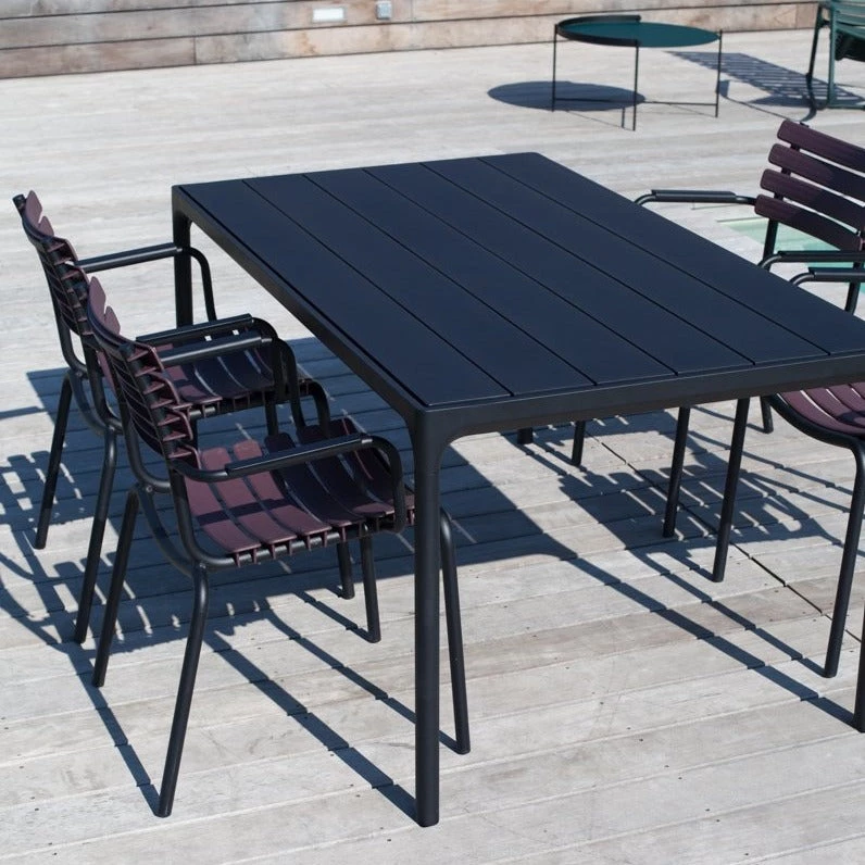 A dining table with a top and Four legs – that is what you get in Four, no matter which size you choose The frame, legs and the top is made with powder-coated aluminium, which will protect the table from rust or fading.