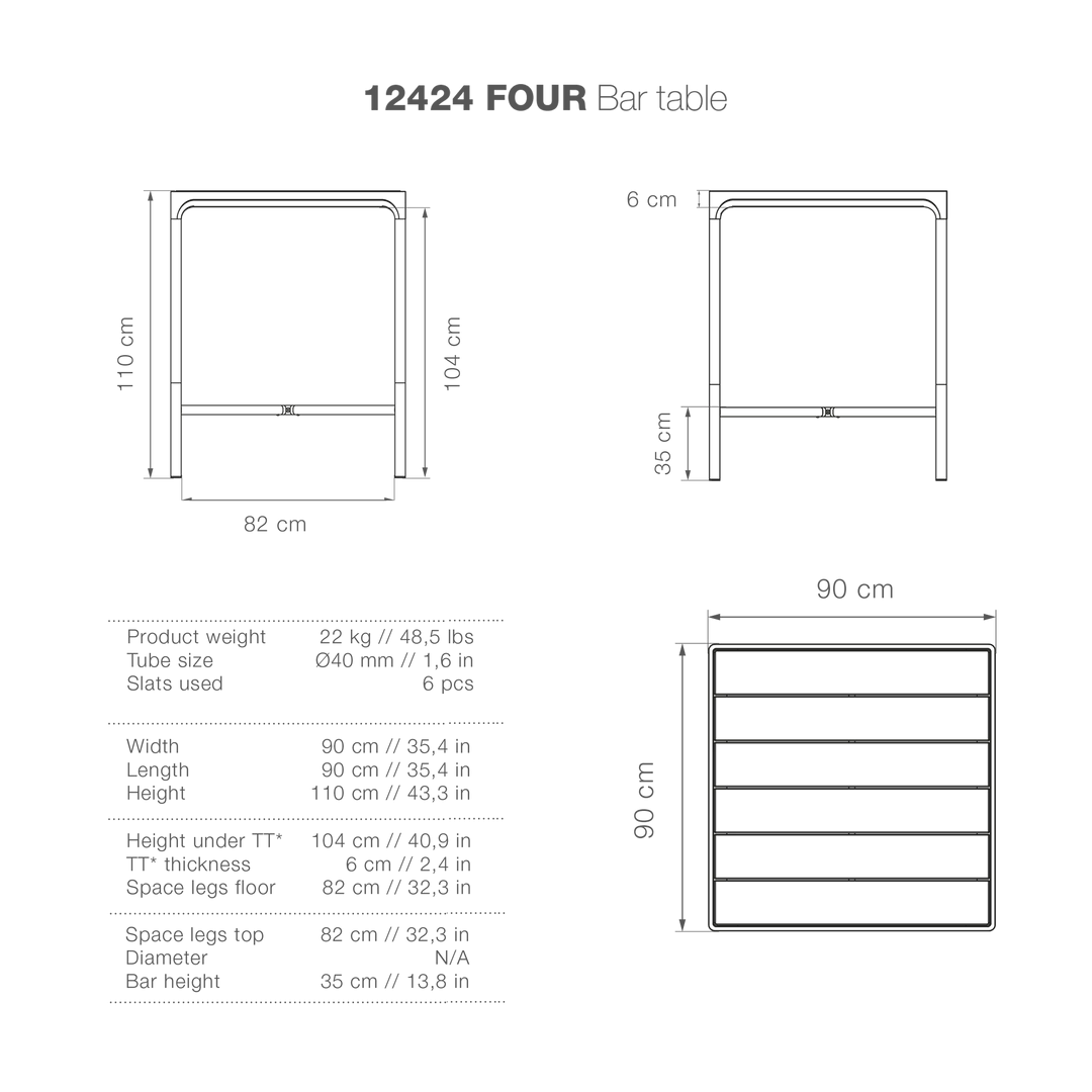 A simple bar table with a top and four legs – that is what you get in Four, no matter which size you choose.