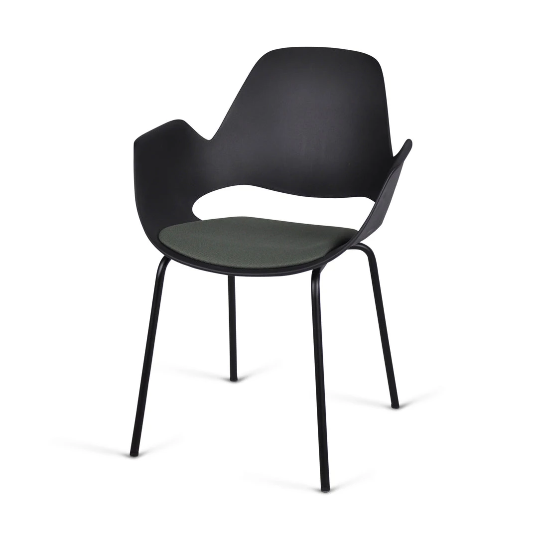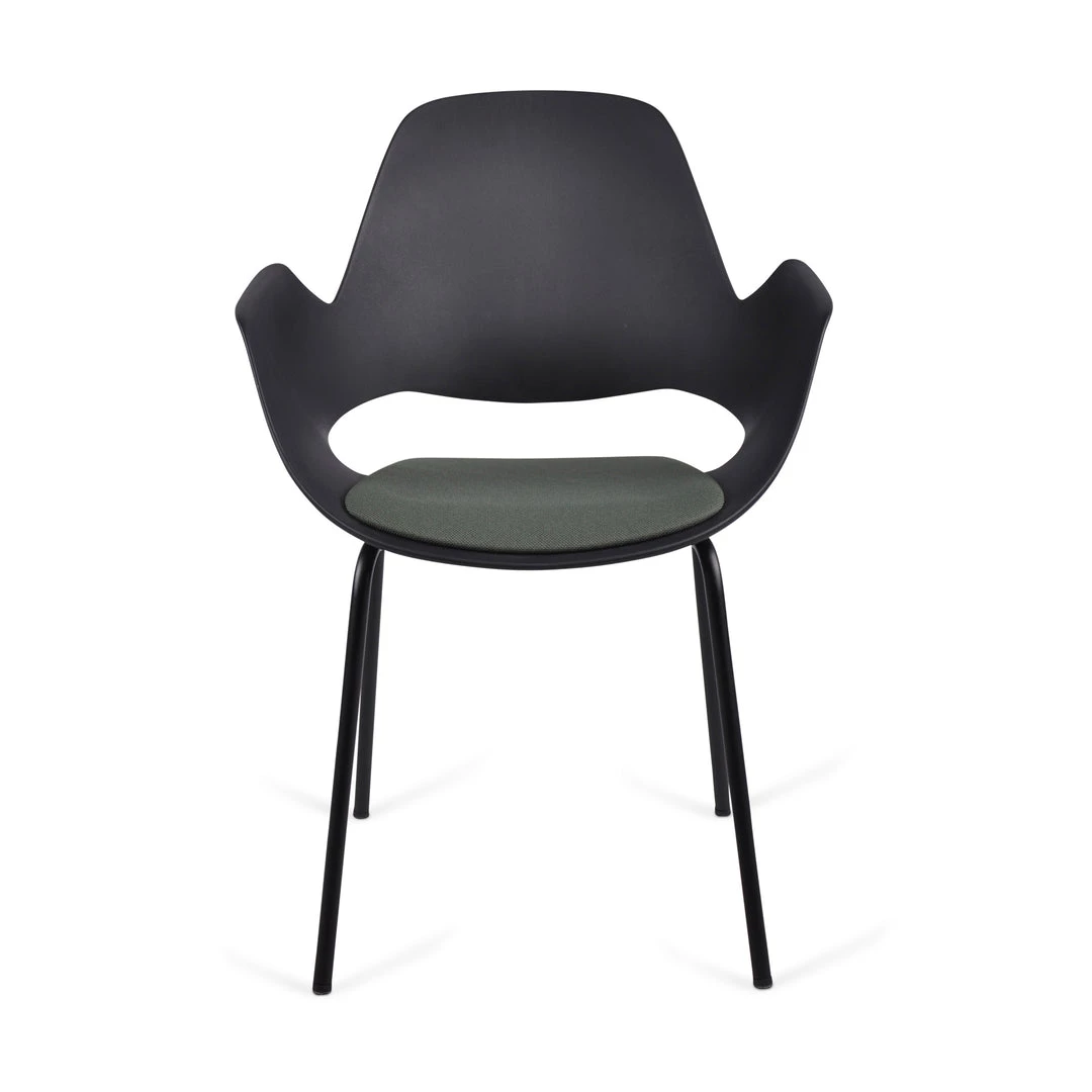 The fabric is made of 98% post-consumer polyester. FALK with tube legs are stackable, easy to clean and very suitable for the hospitality market. It looks great in a café or restaurant setting.