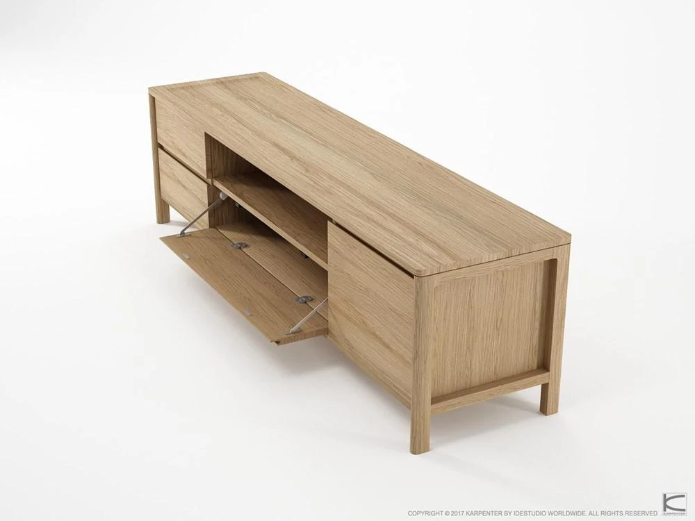 The modern and contemporary Circa range from Karpenter combines current and sophisticated design with exquisite craftsmanship. and luxurious solid European White Oak wood with sumptuous natural finishes. Using sustainably harvested timber, the Circa Media Cabinet comes with 2 soft closing Drawers, a sneaky Flip Door, a handy cupboard with removable shelf plus a visible and a shelf to show off your electrical equipment. The beautiful and elegant Media Cabinet will suit any living space for decades to come.