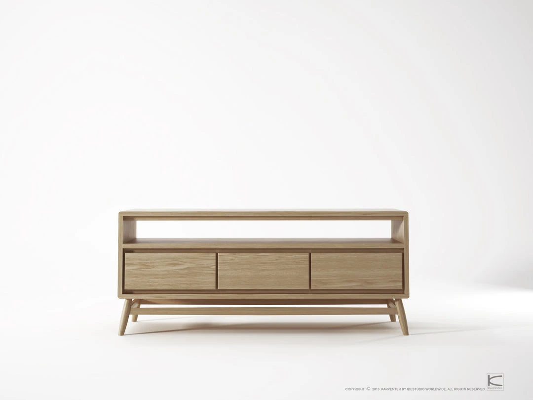This beautiful TV Unit by Karpenter made with solid European White Oak will allow you to watch your favourite shows amongst a stunning piece of furniture for years to come. With 3 soft-closing drawers, and a media shelf you can stash any unsightly pieces away but proudly display your fabulous media equipment
