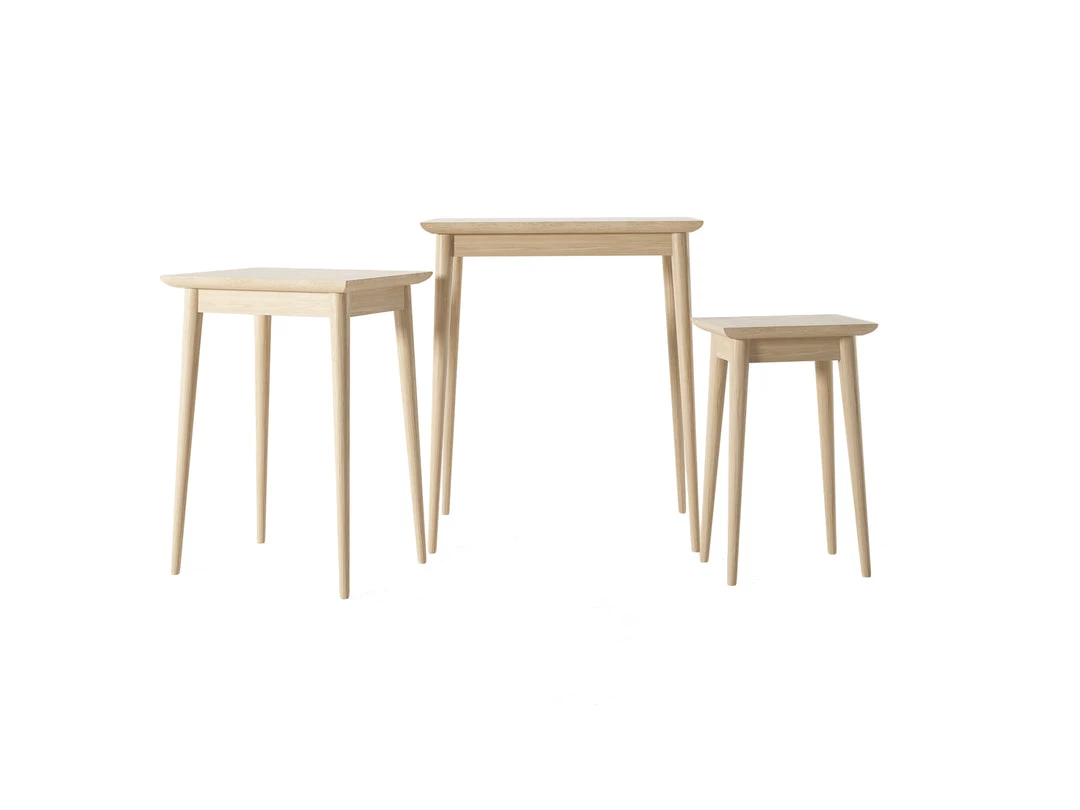 These stylish and retro set of 3 rectangular side tables by Karpenter come in different heights with wonderfully elegant legs that are a must for your living space. Use them as an extra surface but trot them out when required, these beautiful little nesting tables are wonderful when entertaining. This set made in solid European White Oak makes for a cool and sophisticated addition to your home.