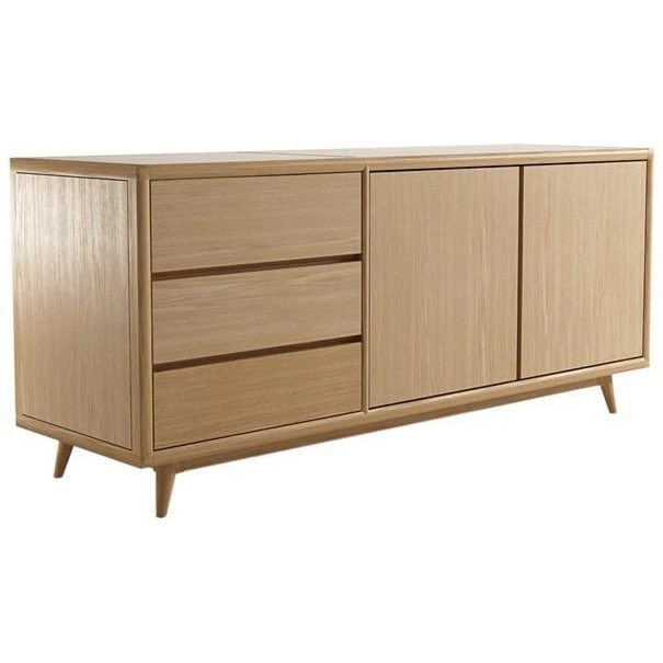 This beautiful sideboard by Karpenter made in solid European White Oak will make a statement in the room of your choice yet offer significant and practical storage. 3 soft-closing drawers, and a dual cupboard with a removable shelf offer privacy for objects that don’t need to be on display yet proudly allow the display of items that you may wish to showcase if required. You can choose which colour will best work with furniture already in play.