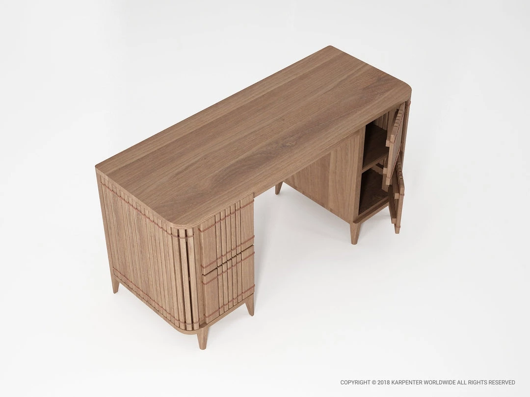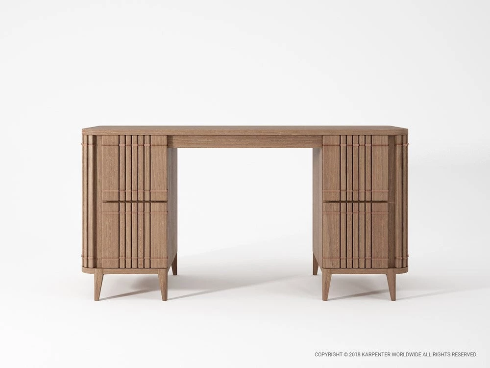 This highly anticipated range from Karpenter goes by the name of Koppar. This stunning Desk is made with solid FSC Teak and features a timeless modern design with smooth curves that will be the beautiful and peaceful addition to your home office. This beautiful piece of furniture that is both practical and embracing of true artistry. The Koppar range is enhanced with the use of beautiful copper accents.