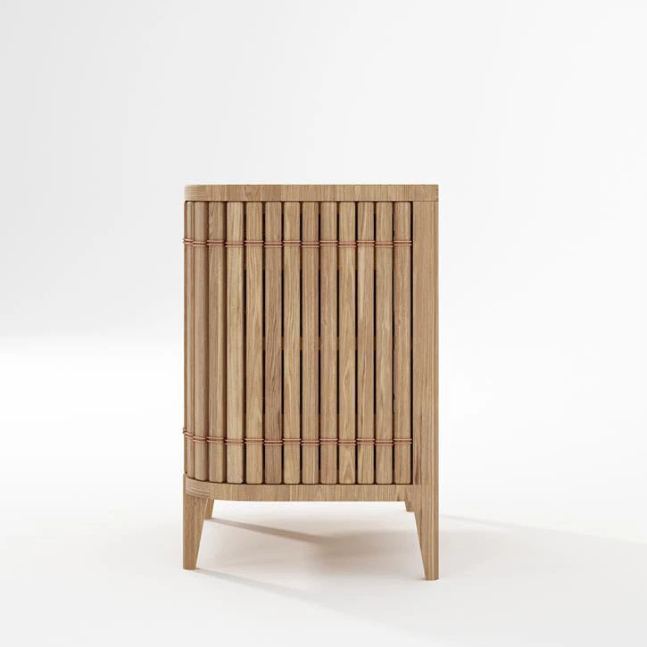 This handy piece of storage is made with solid European White Oak alluring, luxuriant and warm tone to the natural, solid, European White Oak used to create the piece. This gorgeous piece also comes in solid FSC Reclaimed Teak. Fitted with a single soft closing cupboard door this little cupboard has a removable shelf so larger pieces can be stowed away easily. The Koppar range is made even more stunning with the use of beautiful copper accents.