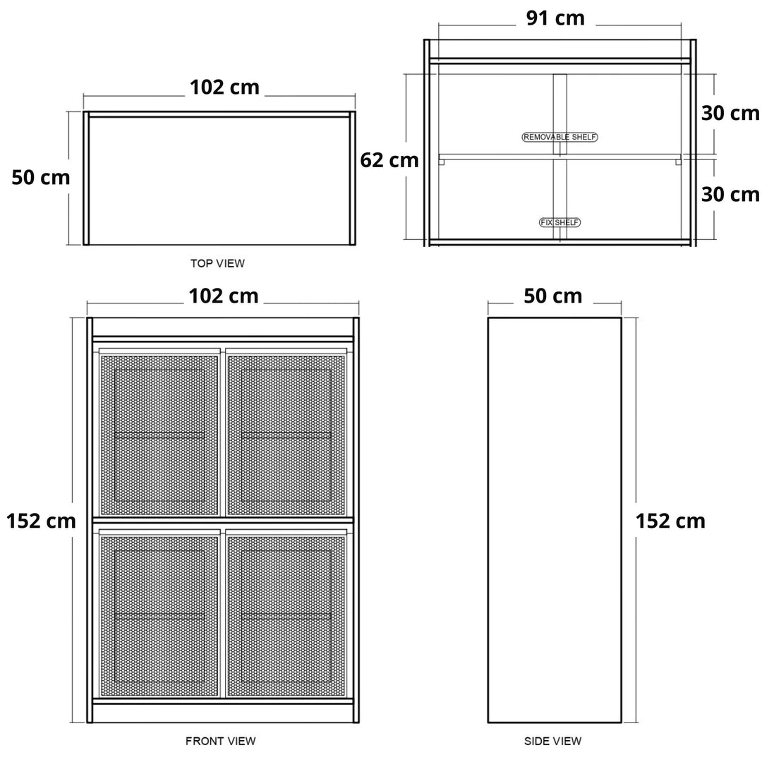 No chipboard or veneers. 4 open compartments with soft-close doors