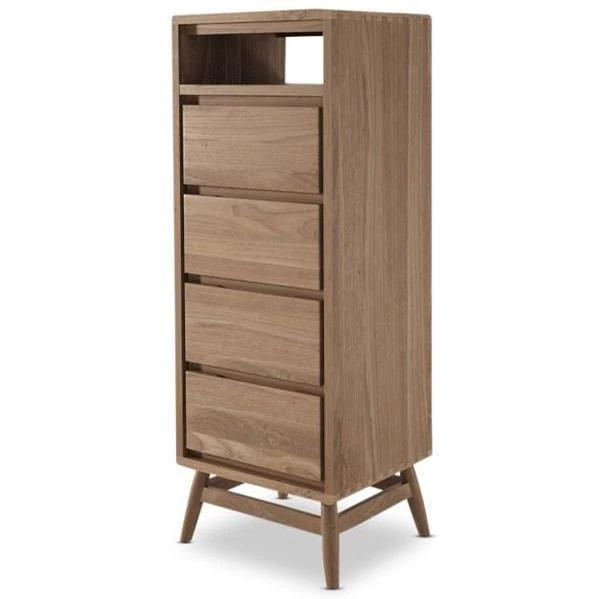 Tall, lean and elegant, the Karpenter Twist Tall Boy comes with 4 soft closing drawers to hide its owner’s secrets and a discreet little shelf you can use to display small trinkets. This beautiful piece of furniture can stand majestically in your chosen position and is made in solid FSC Reclaimed Teak This wonderful and diverse piece of furniture is also available in other tones so you can choose what colour best suits your current decor and space.