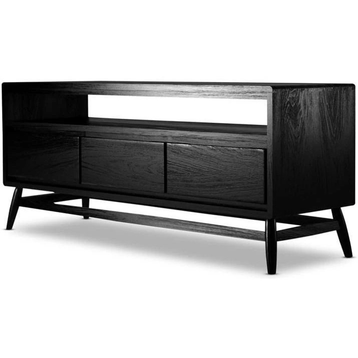 This beautiful TV Unit by Karpenter made with solid European White Oak finished with Satin Black will allow you to watch your favourite shows amongst a stunning piece of furniture for years to come. With 3 soft-closing drawers, and a media shelf you can stash any unsightly pieces away but proudly display your fabulous media equipment.