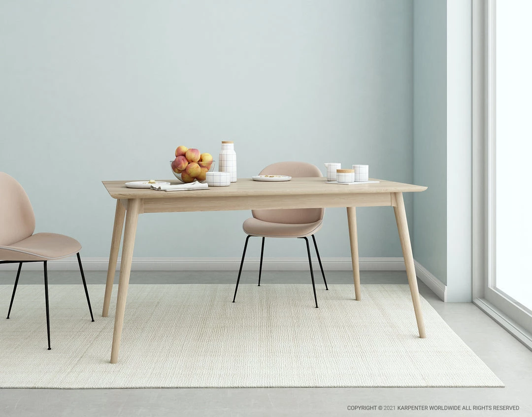 Modern, sleek and contemporary, this beautiful dining table from the Vintage range by Karpenter is made with solid European White Oak but comes in other colours so you can best fit this stunning piece into your chosen feasting place with sympathy to what is already there.