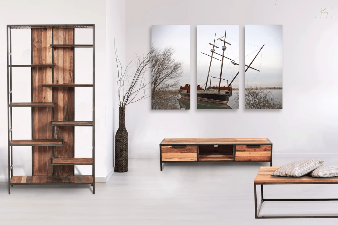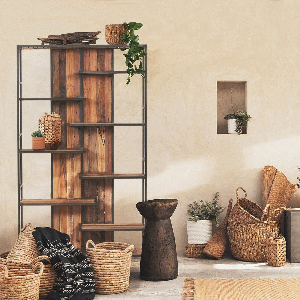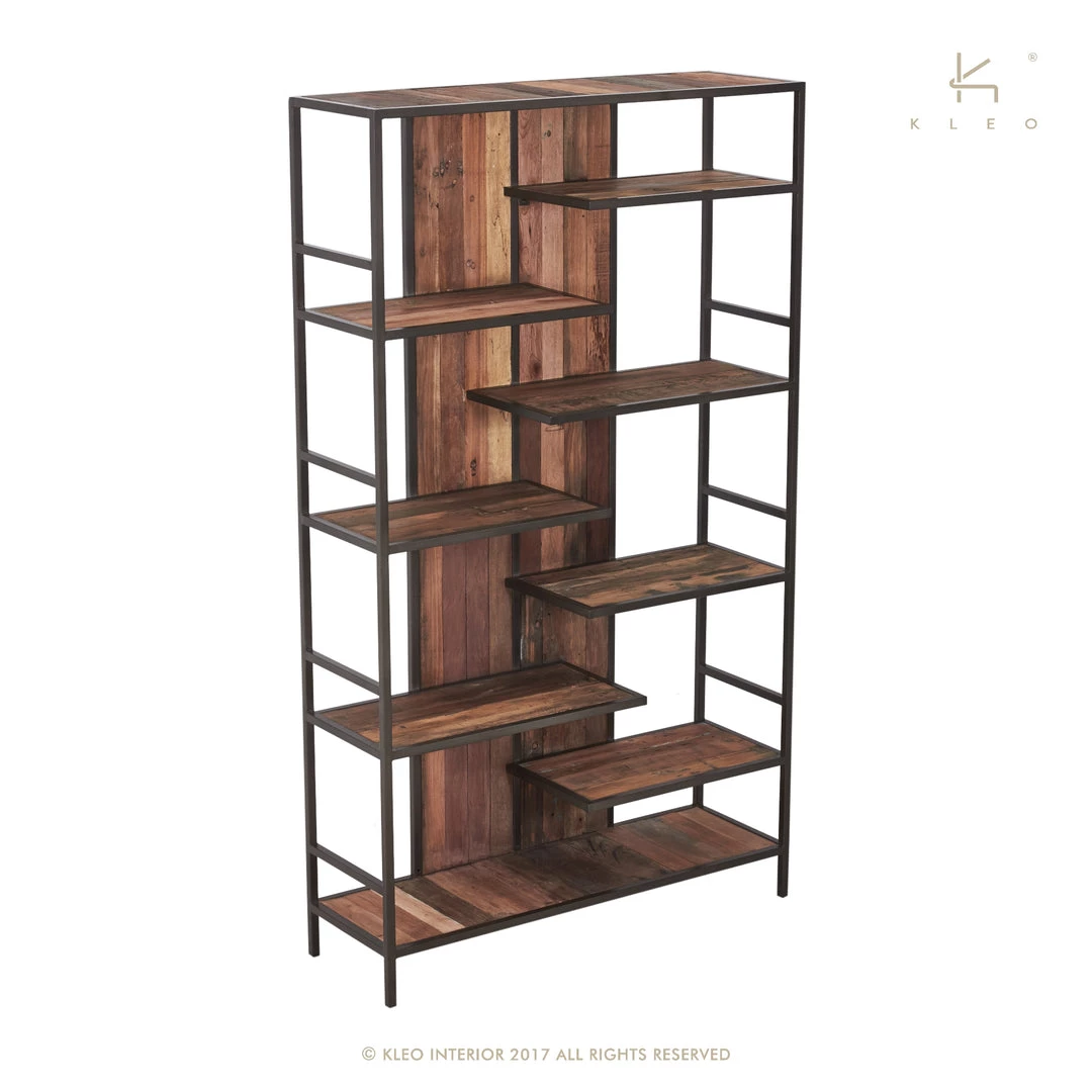 Mixing powder-coated iron and hardwood timbers from old fishing vessels sourced from North Java, the Influence bookcase is sure to impress. The unit consists of irregularly spaced shelves from the centre of the unit with timber backing providing a multi-toned textural backdrop. Perfect for books, pot plants or decor pieces.