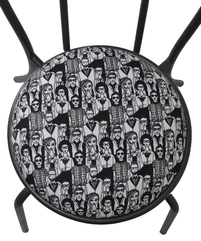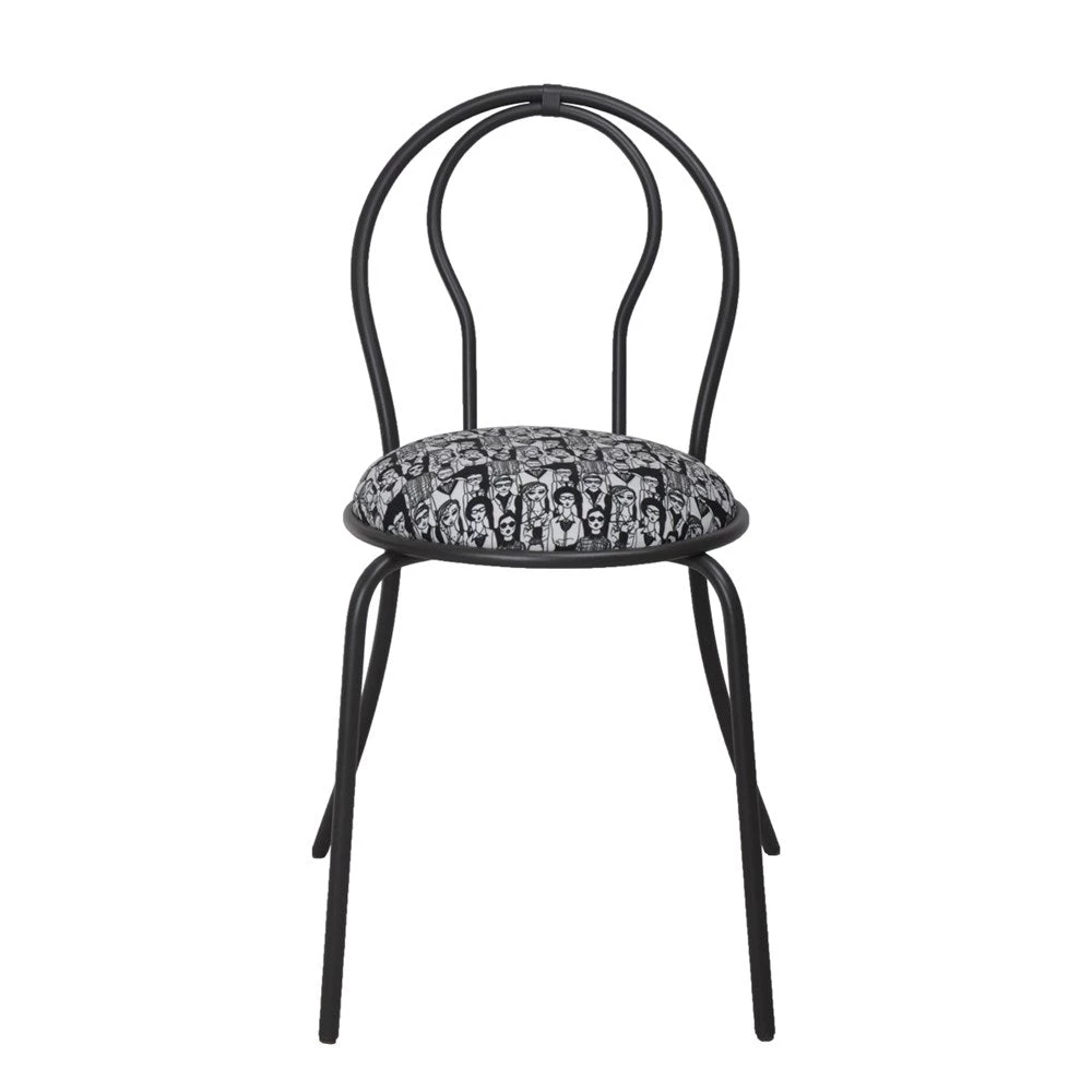 Parisien Dining Chair in Black is made from powder-coated metal and has a patterned upholstered seat.