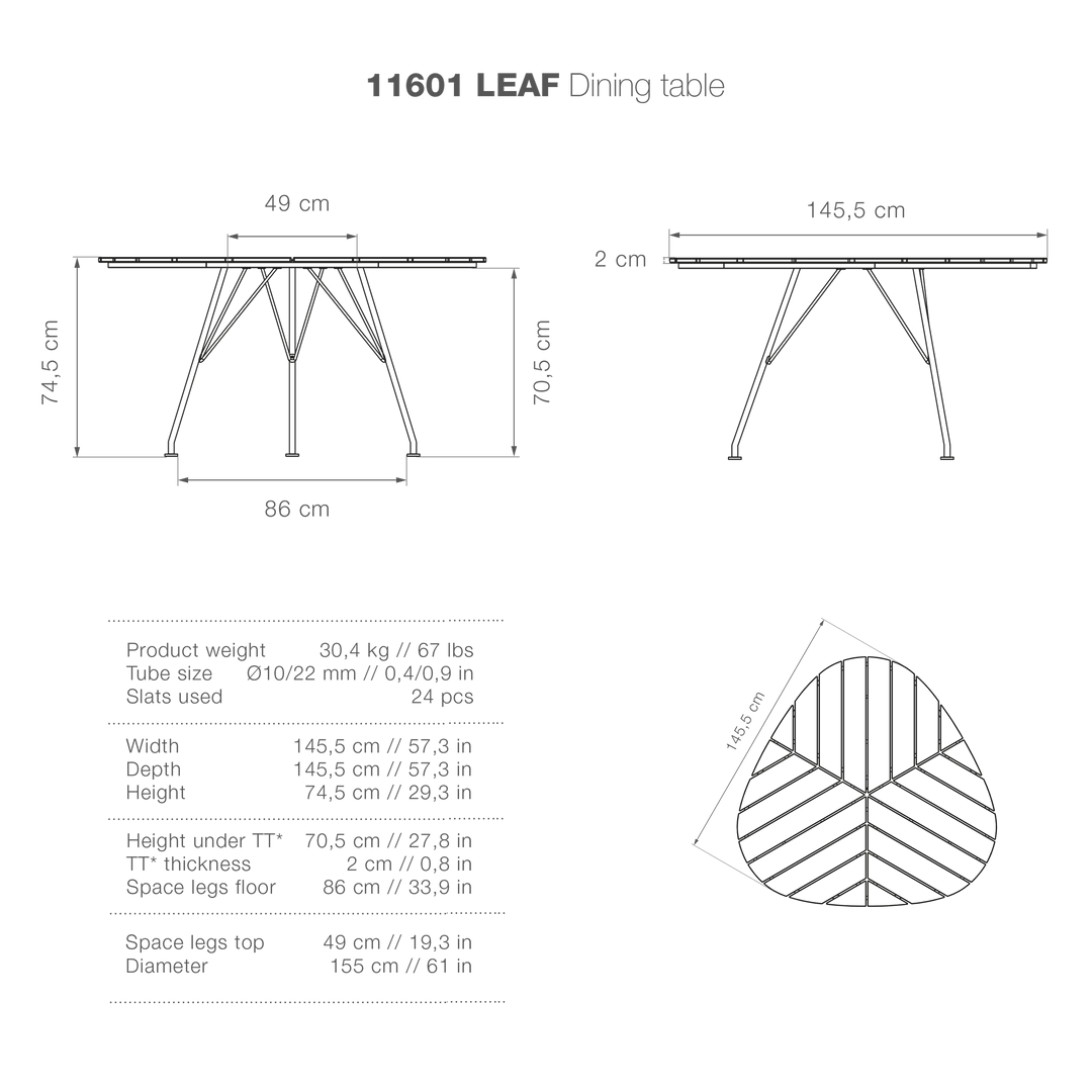 LEAF – A beautiful garden table that really looks like a leaf. The triangular form and the table construction which is drawn under the table makes it possible to seat 9 people around the table. The bamboo tabletop is pre-oiled.
