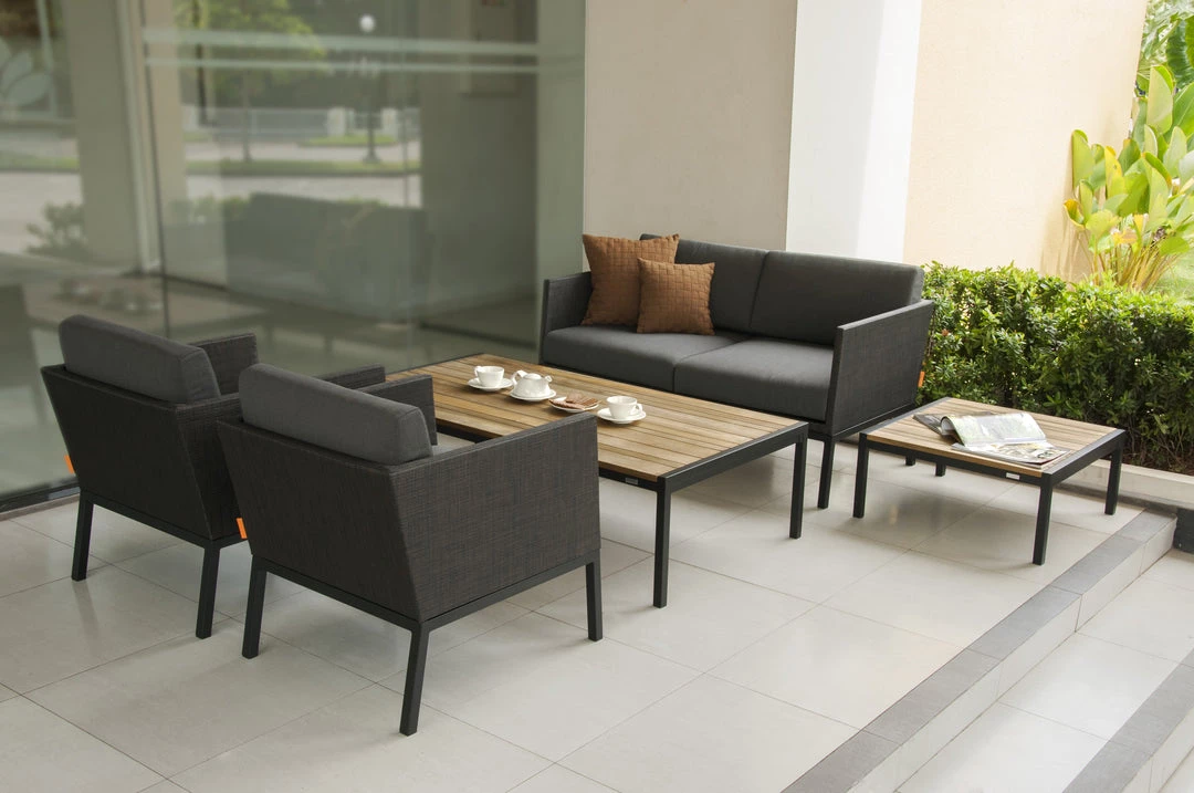 Designed by Barbara Widiningtias (special acknowledgement for Jay Lawson) The Mamagreen JAYDU Side Table Teak is part of the JAYDU collection and features a lightweight powder coated aluminium frame and topped with cerified teak . ( Item pictured Black aluminium, smooth teak ) No Assembly Required,