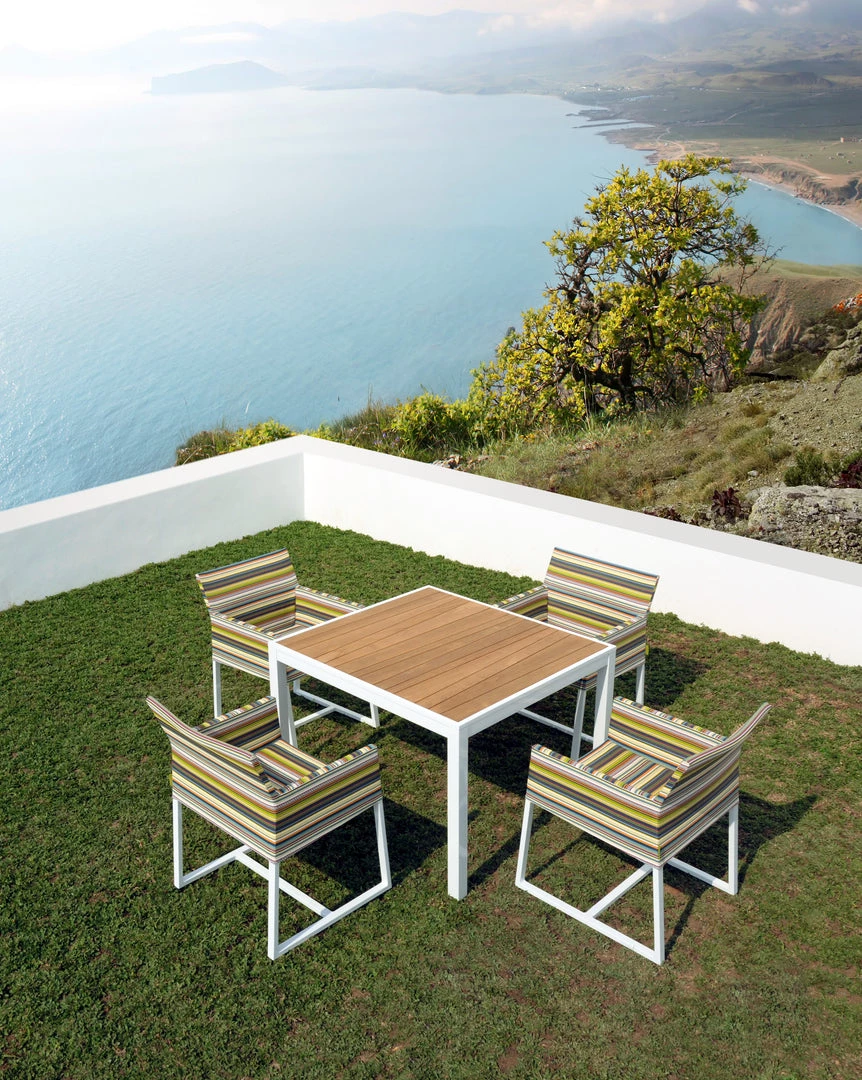 Designed by Vincent Cantaert and Barbara Widiningtias The Mamagreen STRIPE Dining Chair is part of the STRIPE collection, and features lightweight powder coated aluminium frame on a sleigh base and is fully upholstered in Twitchell’s Textilene Stripe outdoor textiles with an inbuilt cushion. No Assembly Required. see options in details.