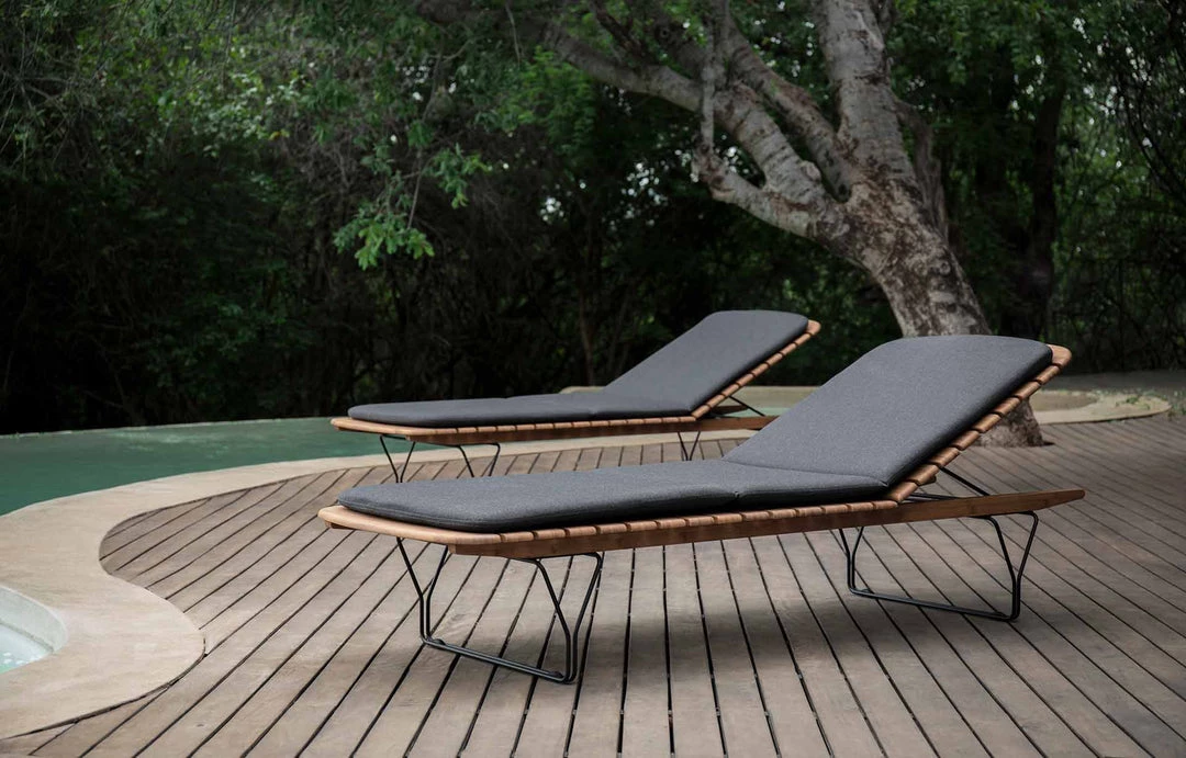 MOLO Sunbed is beautiful as it is with its warm bamboo surface, but for even more comfort you can add the MOLO Sunbed cushion in dark grey Sunbrella Natte fabric. The Natte fabric from Sunbrella is water and stain-resistant and is made in 100% polyester.
