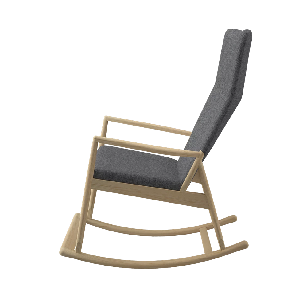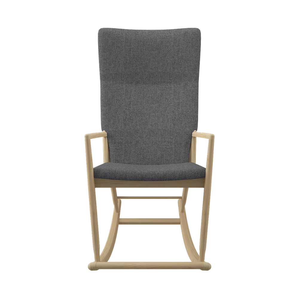 The Flow rocking chair is created with a comfortable upholstered seat and back cushion, and naturally, the frame is handmade from solid ash wood – available in numerous stains. The cushions are also available in a variety of beautiful colors, to ensure that there’s one that matches your interior.