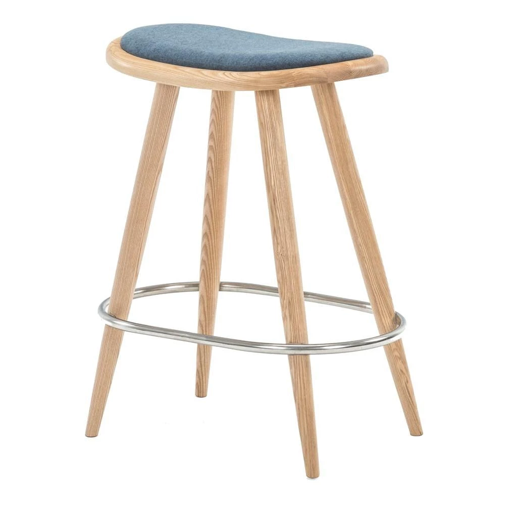 The elegant handmade bar Universal Bar Stool adds a touch of minimalist flavor to your kitchen. The barstool is made from solid ash wood with a comfortably padded seat so you can hang out in the kitchen all night long. The stool also boasts foot support in hand-brushed stainless steel. The foot support embraces the chair in a streamlined metal ring and completes the minimalist Scandinavian look of the stool. It fits perfectly into the Nordic home and is the practical choice for all families with kids as it is easy to clean with a damp cloth.