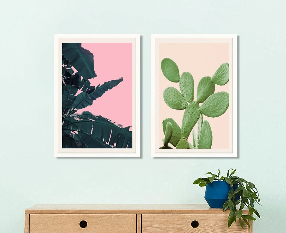 Detail of Prickly Pear On Dusty Pink Background. Giclee Print On Coated Paper with White Frame & Glass. the Detail Art Prints Look Stunning Individually, Or Group Together to Form a Showcase of Botanical Calm.