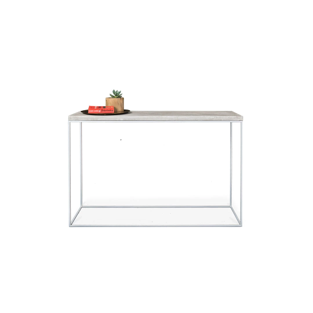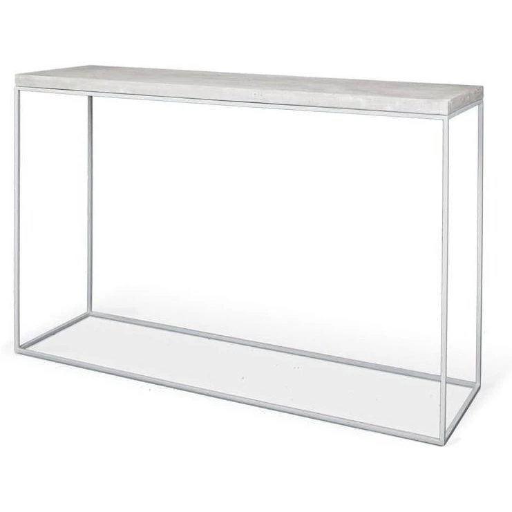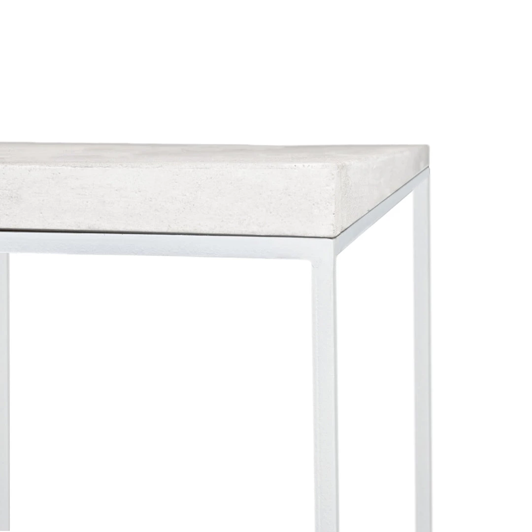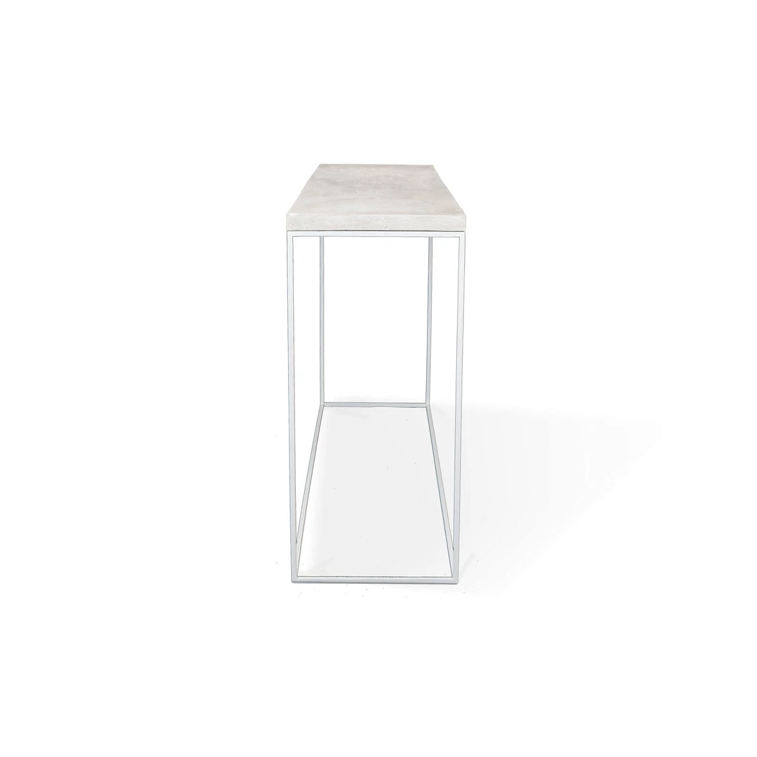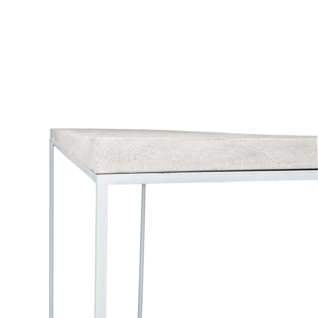 The Concrete Console Table consists of a natural concrete tabletop which sits atop a simple box style steel frame powder-coated in a white finish. The tabletop will have a natural concrete patina with tonal differences, and be a smooth finish which may have minor imperfections such as air pockets. The steel frame is simple and contemporary to suit many styles to fit seamlessly with any fit-out. The Concrete range consists of a console, side table and square coffee table, as well as planters and other accessories. You can combine pieces to make a statement, or have a single piece as part of a feature. The range is understated utilising the smooth curves and features inherent with the material. Care & maintenance, use soapy water and a soft cloth. Don’t use harsh cleaners. Powdercoated Steel frame in white colour finish Natural concrete tabletop “