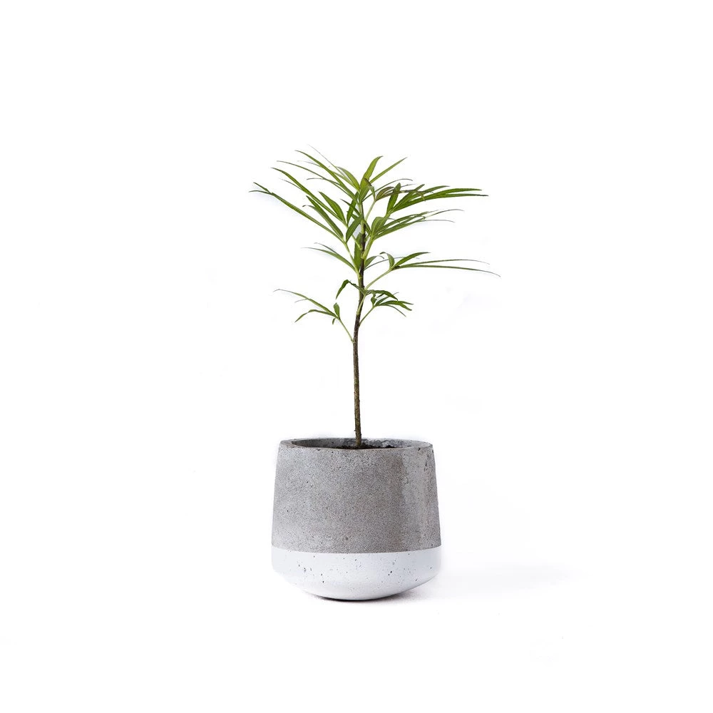 The Concrete Planter is a natural concrete planter with a white colour band at the base. The concrete planters have an epoxy resin coating on the inside, and a polyurethane coating around the outside to assist with planting directly in the pot, or you can opt to have the pot plant sit within. There is no drainage hole at the base. these are suitable for indoor use, or in a covered area outside. This size is great to sit on a window sill, console or sideboard, coffee table, or kitchen area. In short, wherever suits! The Concrete range consists of a console, side table, and square coffee table, as well as the planters and other accessories. You can combine pieces to make a statement, or have a single piece as part of a feature. The range is understated utilising the smooth curves and features inherent with the material. Natural concrete finish with a white colour band at the base Indoor Use Only Suitable to plant directly, or have pot plant sit within No drainage hole so water as required