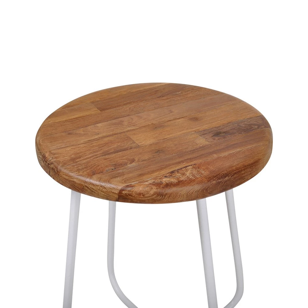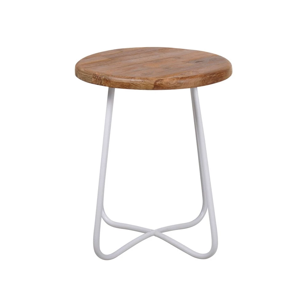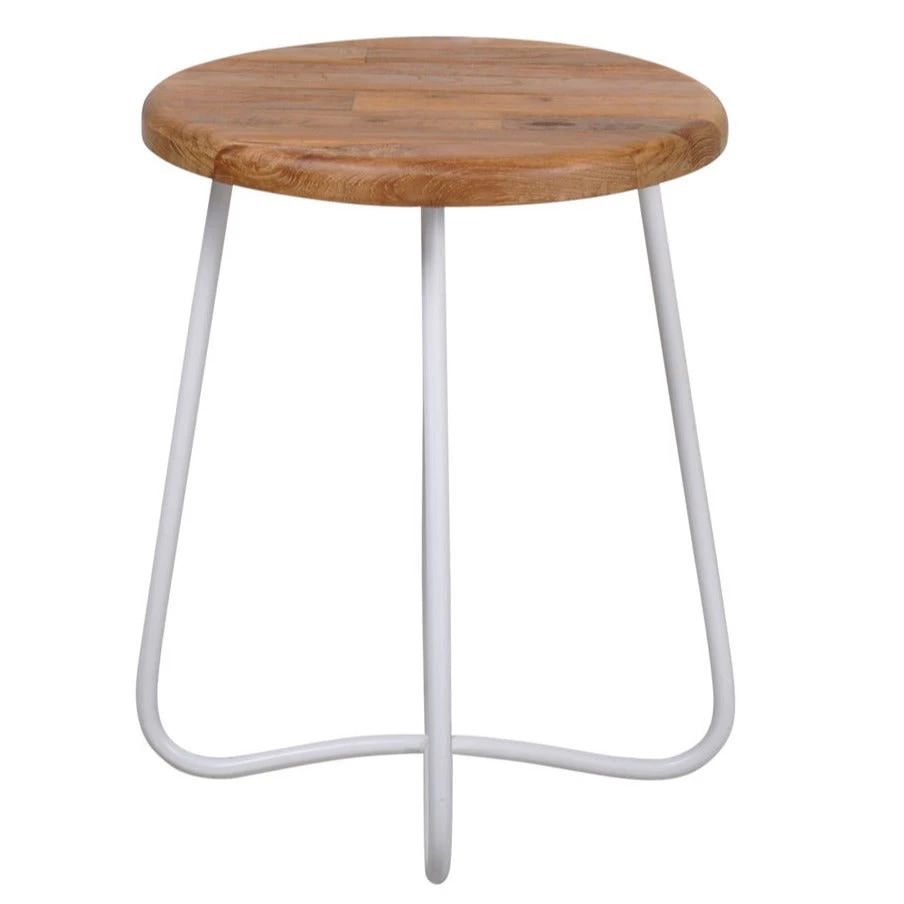 Curve Stool with round teak top and white powder coated legs provides natural character casual style.