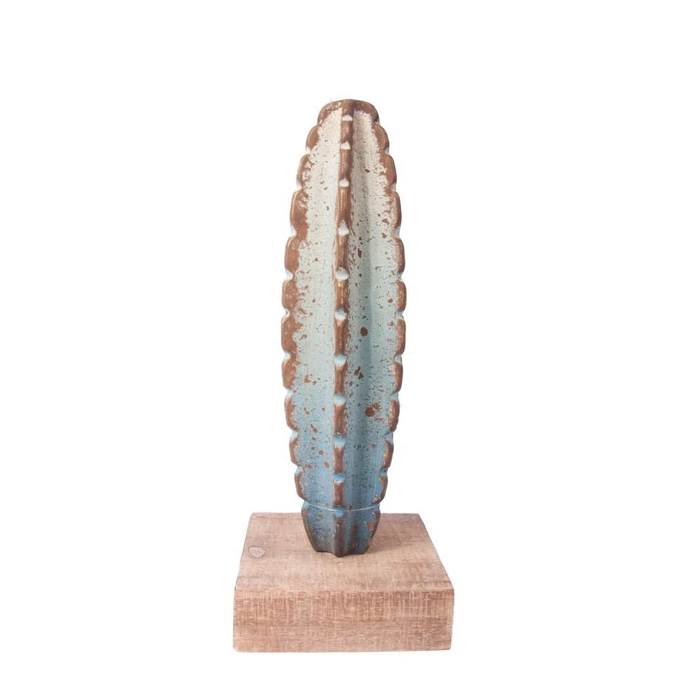 Add a Touch of Greenery to Your Window Sill or Living Space with This Metal Cactus on Wood Base. Suitable for Indoor Use.