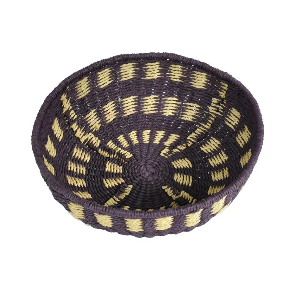 This small deep bowl has rippled texture weaved within. made from paper twine in aubergine & natural colour tones