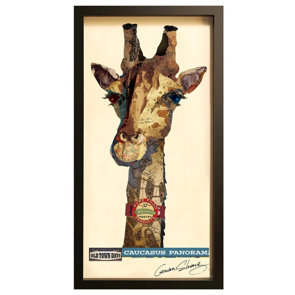 Lady Giraffe is a lovely long necked girl with big beautiful eyes. We have graced her beauty with an extra tall Black frame and glass cover with cream art paper background.