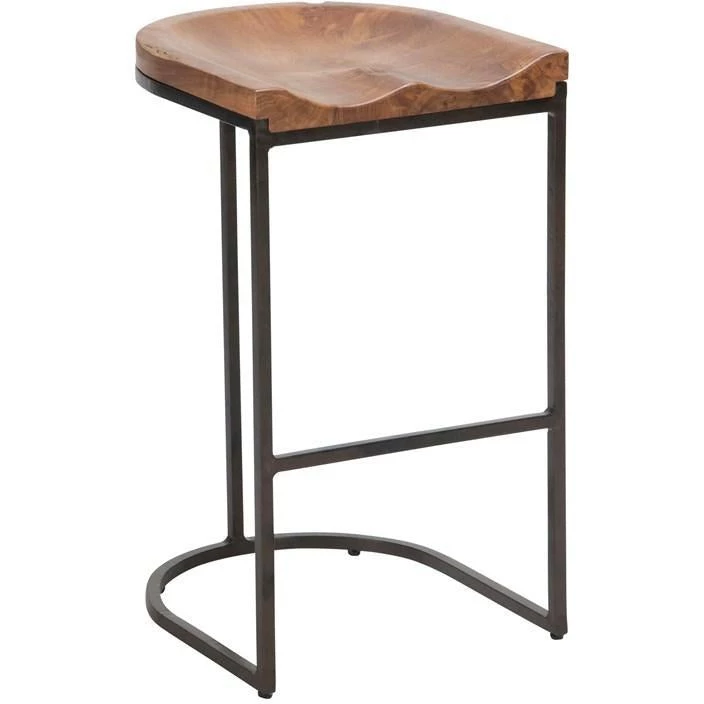 The Stella counter stool with moulded seat rest in reclaimed teak slab & powder coated seat base in antique colour finish. This refined counter stool will add character to your setting, adding comfort and durability. Suitable for indoor use. Tropica is an Indonesian family-owned furniture business that uses teak remnants from large manufacturers, resulting in minimal wasteage of timber resource.